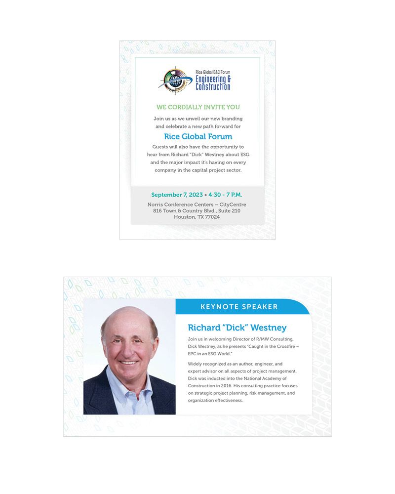 We also conducted a social media audit with recommendations to apply their new branding as well as streamline and strengthen their social identity. In our continued relationship with Rice Global Forum we supported their yearly marketing efforts and events with social media maintenance, digital graphics, print collateral, promotional items, conference displays and more.